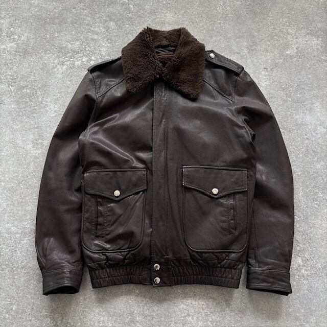 【C&A】シーアンドエー 90s レザージャケット フライトジャケット ユーロヴィンテージ ライナー脱着 G-1 ブラウン ゴートスキン ブラウン