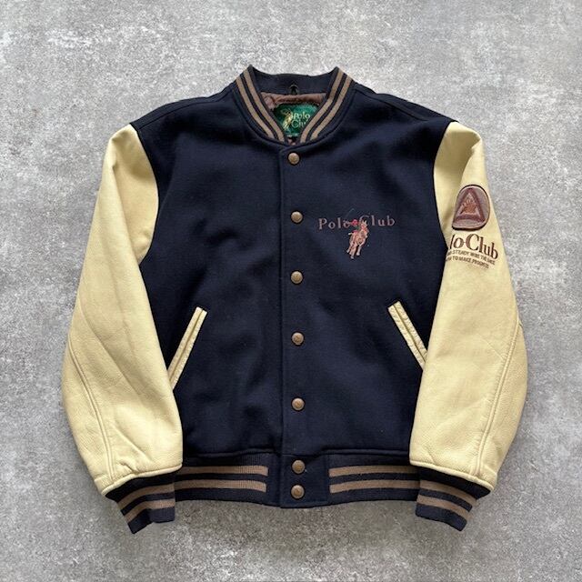 【Polo Club】ポロクラブ スタジャン スタジアムジャンパー バーシティジャケット 90s 袖レザー 刺繍 ヴィンテージ 裏地キルティング 総柄