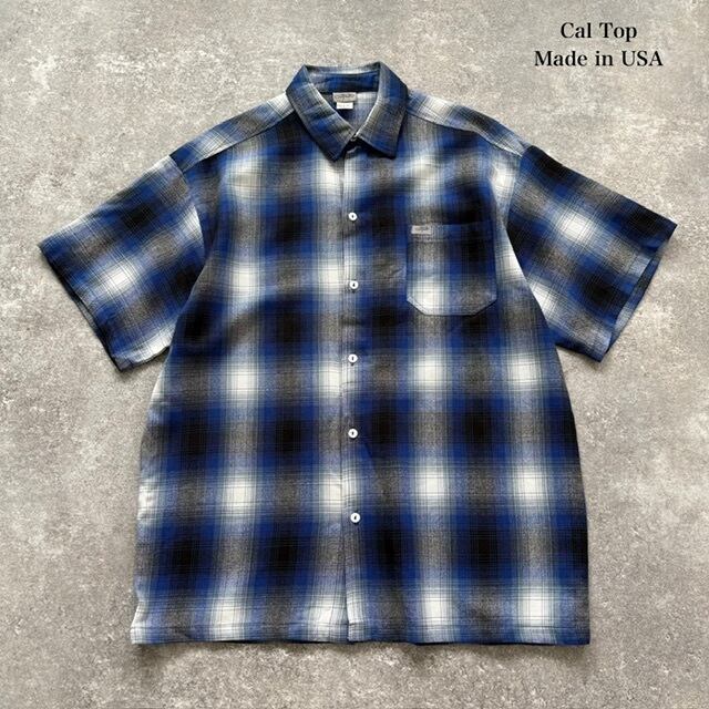 【Cal Top】キャルトップ カルトップ オンブレチェック シャドーチェック 半袖シャツ ボタンダウンシャツ USA製 アメリカ製 ROYAL/WHITE