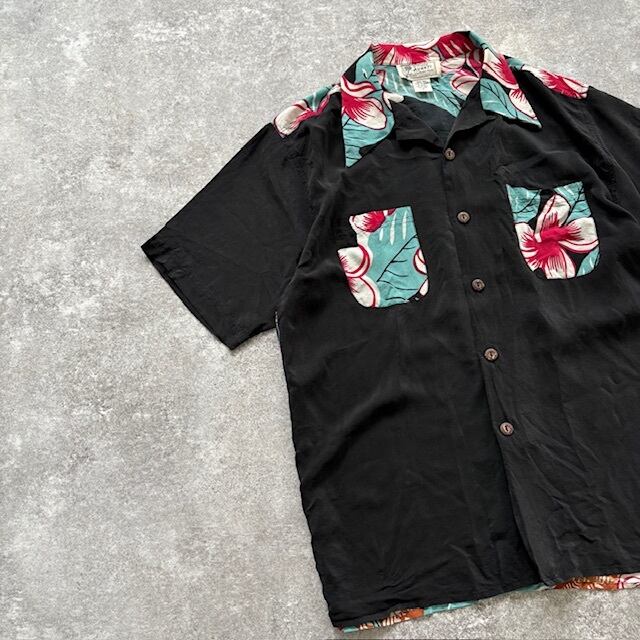 【Avanti】アバンティ HULAGIRL アロハシャツ オープンカラー ハワイアンシャツ 半袖シャツ バックパネルパターン シルク 90s ヴィンテージ