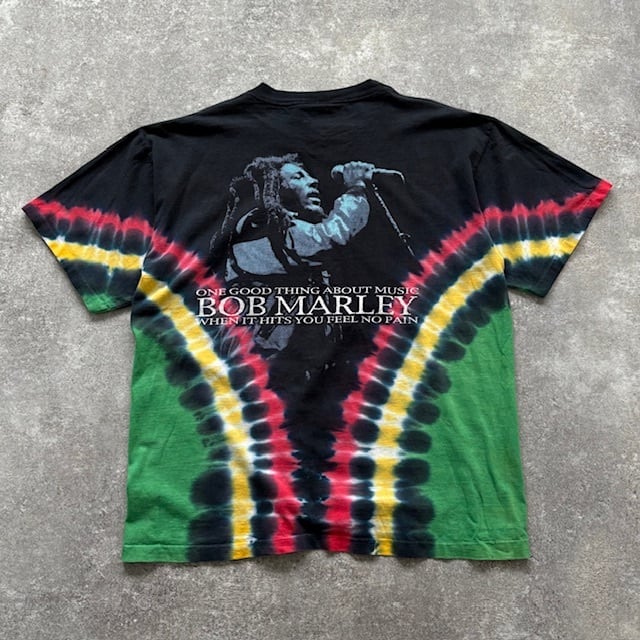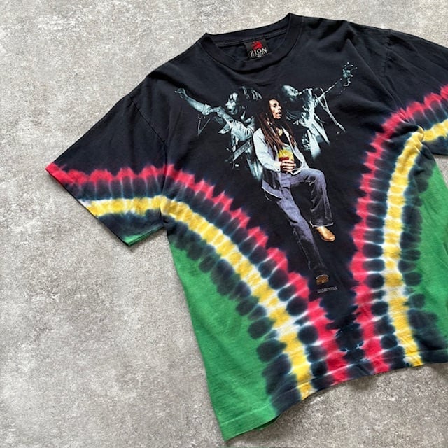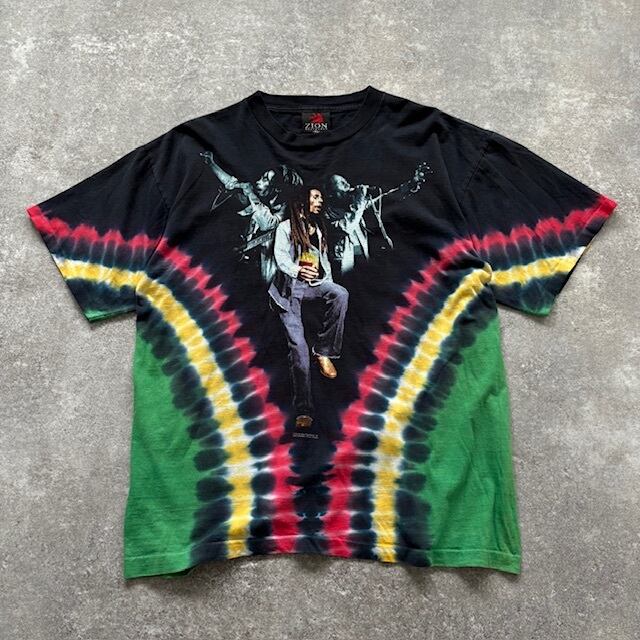【ZION】BOB MARLEY ボブマーリー レゲエの神様 ビッグプリントTシャツ タイダイ レゲエカラー ラスタカラー 半袖tシャツ tee ブラック XL
