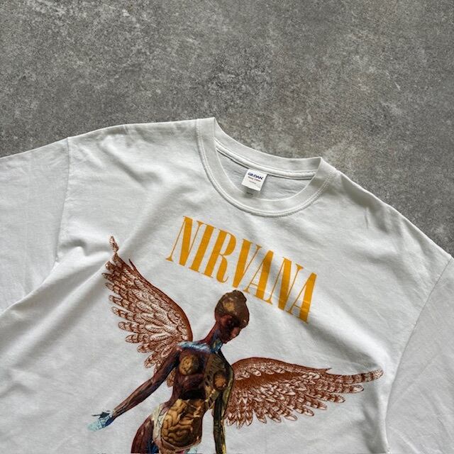 【GILDAN】NIRVANA IN UTERO Printed Tshirt ギルダン ニルヴァーナ インユーテロ プリントtシャツ tee 半袖Tシャツ ホワイト (XLサイズ)