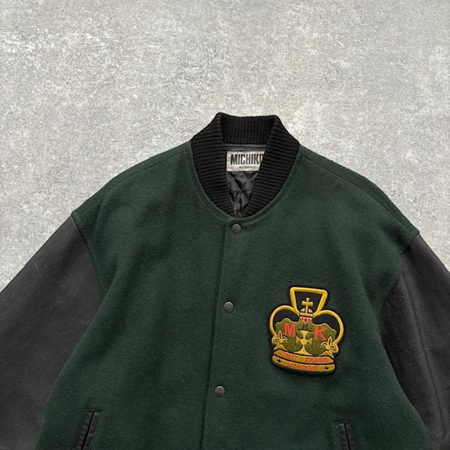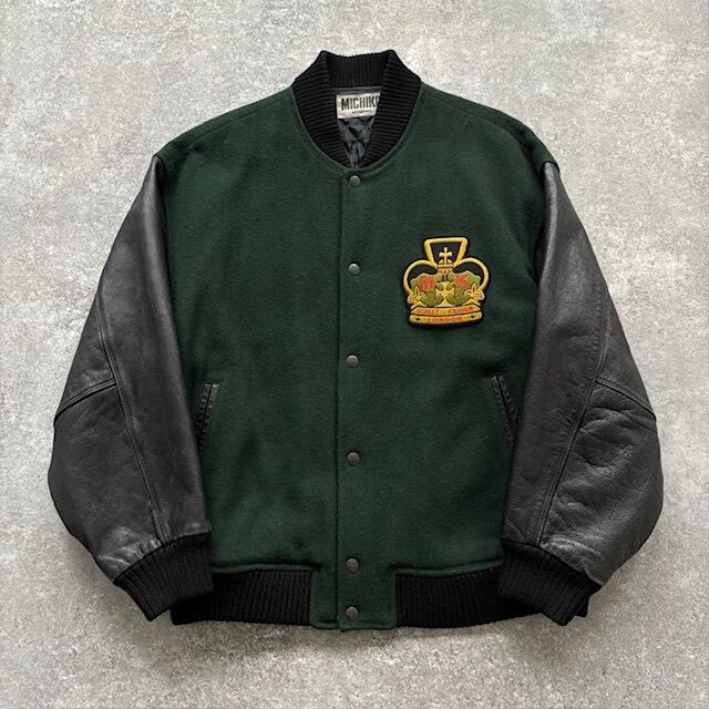 【MICHIKO LONDON】ミチコロンドン スタジャン 80s ヴィンテージ スタジアムジャンパー バーシティジャケット 刺繍ロゴ 袖レザー 袖革