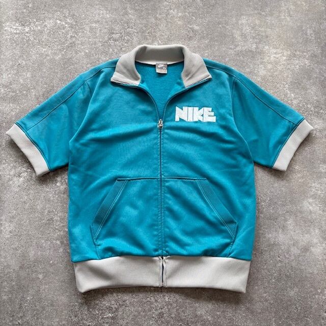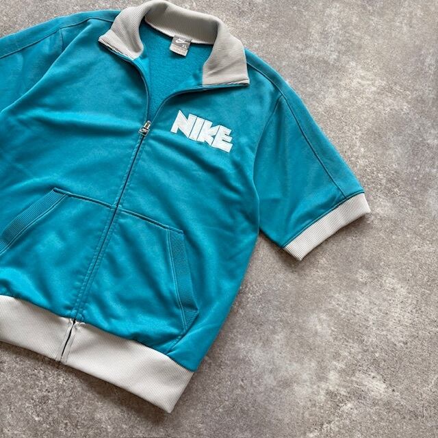 【NIKE】ナイキ トラックジャケット 半袖ジャージ 半袖スウェット ジップアップ ゴツナイキ 刺繍ロゴ ヴィンテージ復刻 70年代復刻 (XL)
