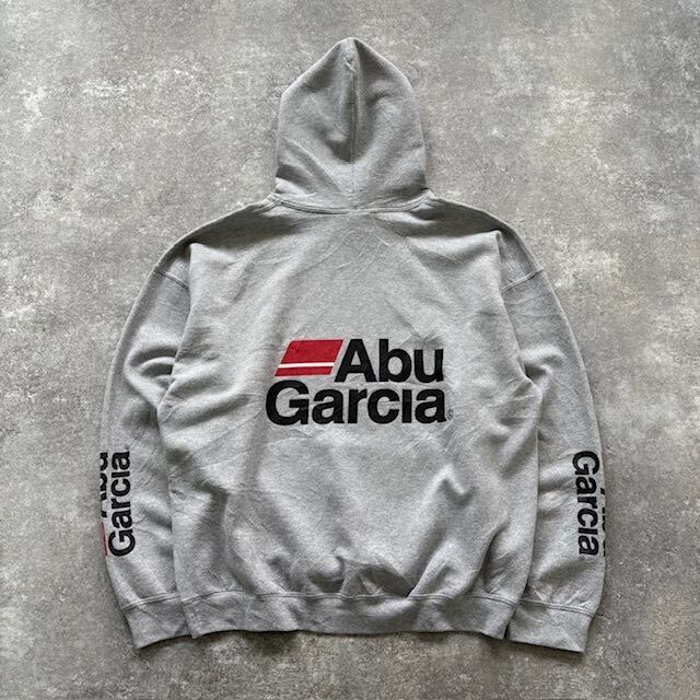 【ABU GARCIA】GILDAN アブガルシア スウェットパーカー ギルダンボディ プルオーバー フーディ 両面プリント 企業系 レア物 海外企画 XL