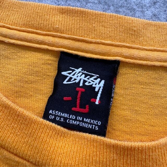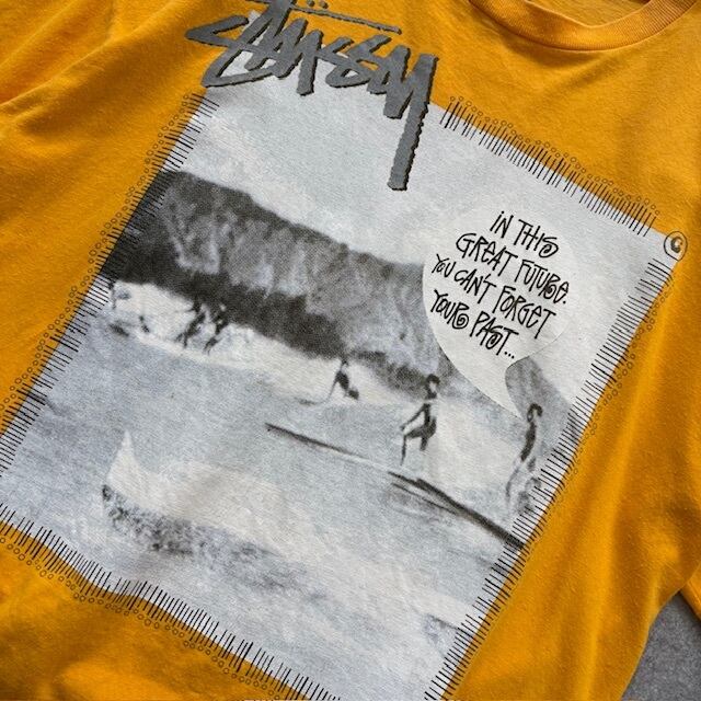 【stussy】ステューシー 半袖Tシャツ tee フォトプリント クラウン SSロゴ マスタードイエロー サーフフォト メキシコ製 激レア (L)