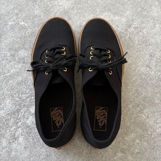 【Vans】バンズ オーセンティック スニーカー 海外企画 ブラック ガムソール ゴールドハトメ ブラック 黒 VANS スケーター (us10.5)