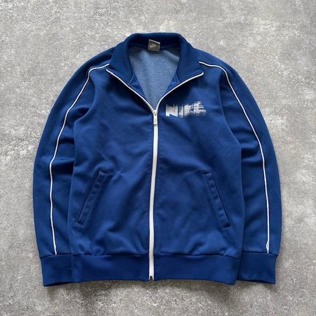 【NIKE】ゴツナイキ ジャージ トラックジャケット トラックトップ ヴィンテージ復刻 ジップアップ 70年代レプリカ かすれ加工 ブルー (M)