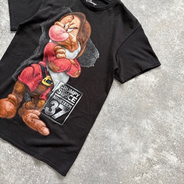 【Disney】ディズニー 白雪姫 7人の小人 グランピー 半袖tシャツ Tシャツ tee 大判プリント ビッグプリント ブラック 黒 海外企画