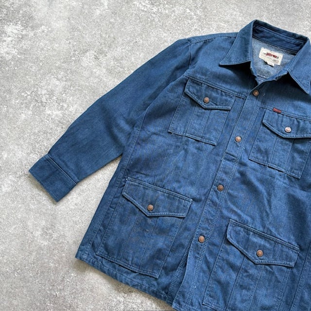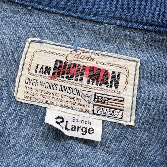 【EDWIN】RICH MAN エドウィン リッチマン 70s デニムサファリジャケット カバーオール デニムジャケット 70年代 濃紺未使用 (Lサイズ)