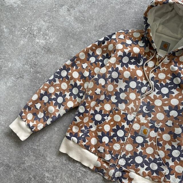 【Carhartt】カーハート ジップパーカー ジップアップフーディー フラワー 花柄 希少デザイン 総柄 隠れロゴ キャンバス生地 レア物 (M)