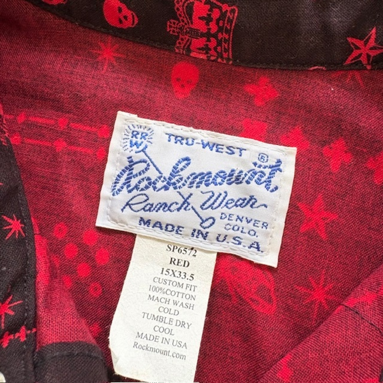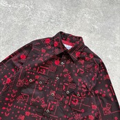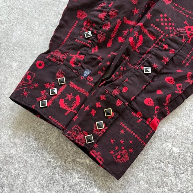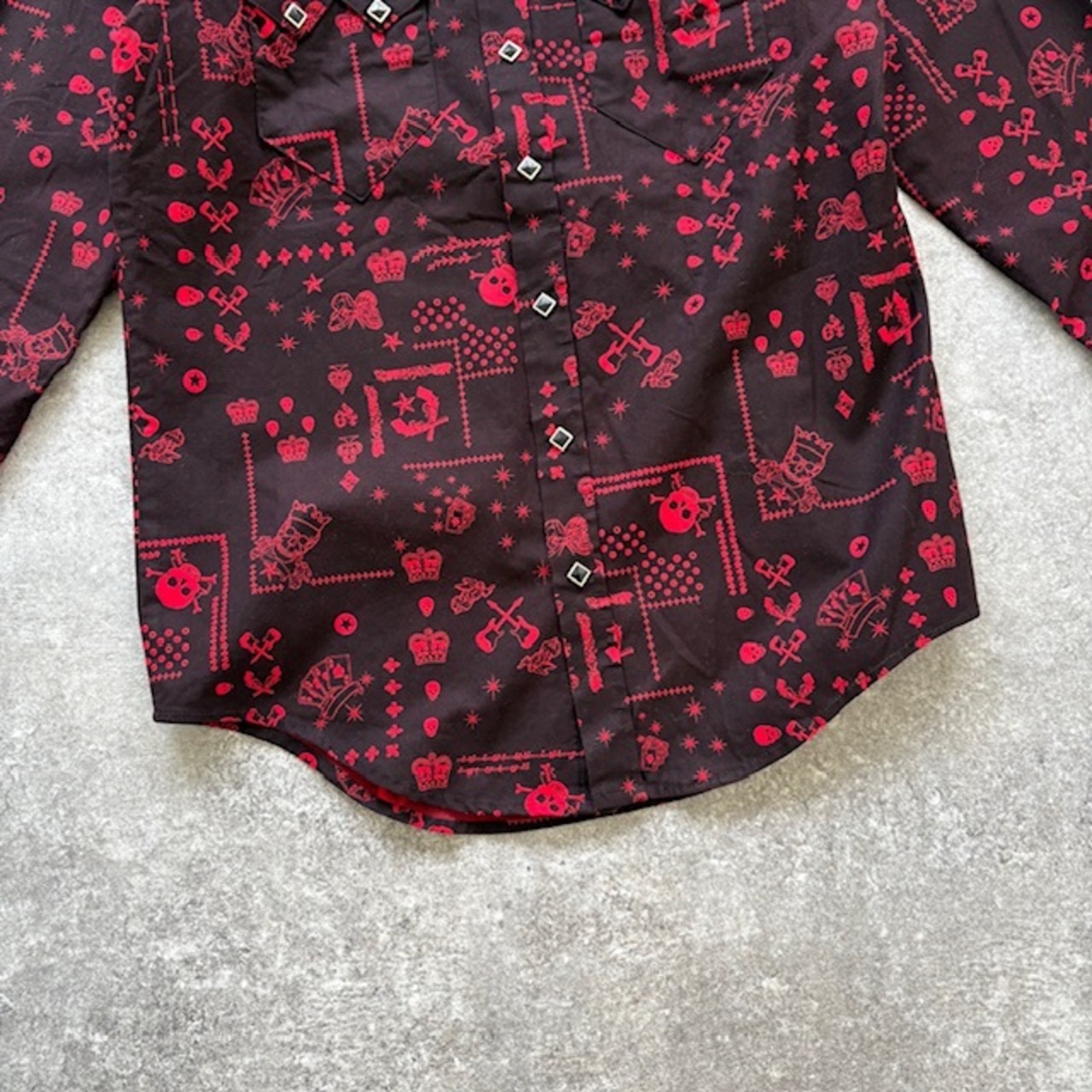 【Rock mount】ロックマウント ウエスタンシャツ 長袖シャツ ボタンダウンシャツ スカル ギター クラウン 総柄 USA製 アメリカ製 ブラック