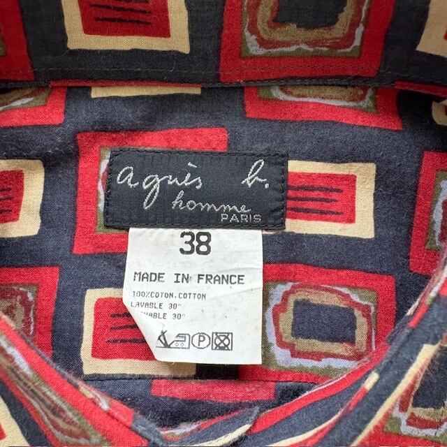 【agnes b. homme】Made in FRANCE アニエスベー 90s 長袖シャツ ボタンダウンシャツ 総柄 幾何学模様 フランス製 90年代 ヴィンテージ 38