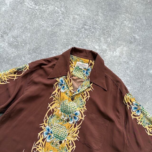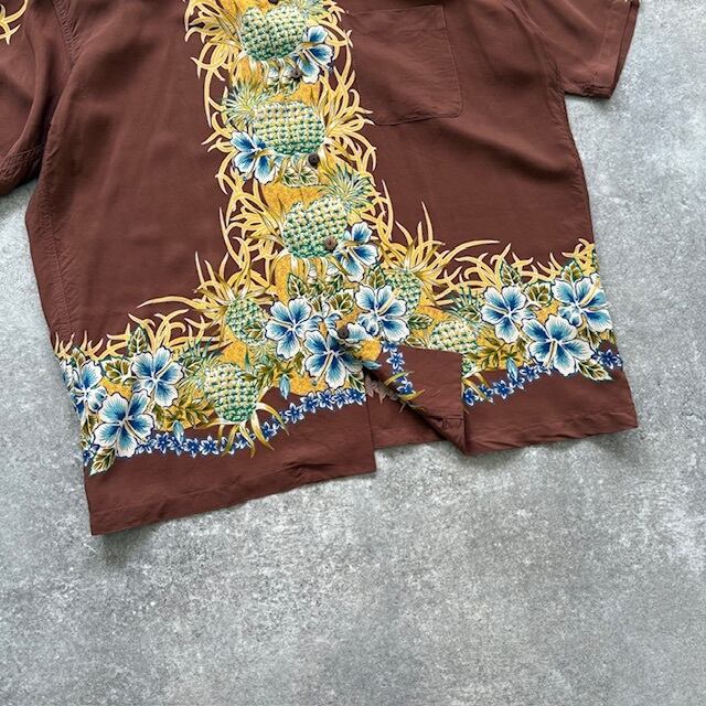 【Jacks surf】90s ジャックスサーフ レーヨン アロハシャツ ハワイアンシャツ オープンカラーシャツ パイナップル ハイビスカス ボーダー