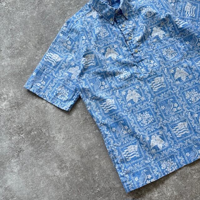 【reyn spooner】90s ラハイナセイラー アロハシャツ ハワイアンシャツ プルオーバー ハーフボタン 90年代 ヴィンテージ リバースプリント
