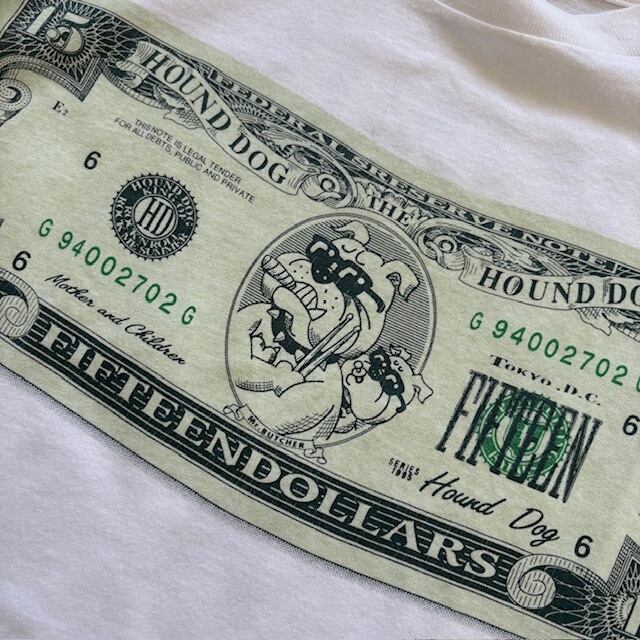 フロントには15ドル札を模した遊び心あふれるグラフィック、バックには大胆なツアーロゴ。まさに当時の空気をそのまま纏ったような一枚です。