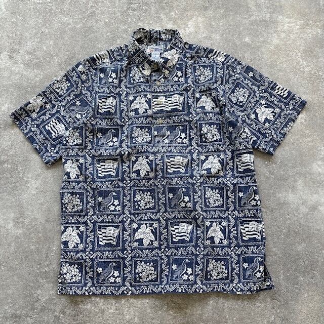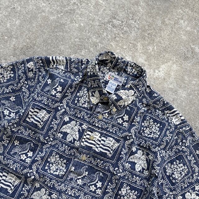 【reyn spooner】レインスプーナー ラハイナセイラー アロハシャツ ハワイアンシャツ ハーフボタン ビキニタグ 90's リバースプリント (L)