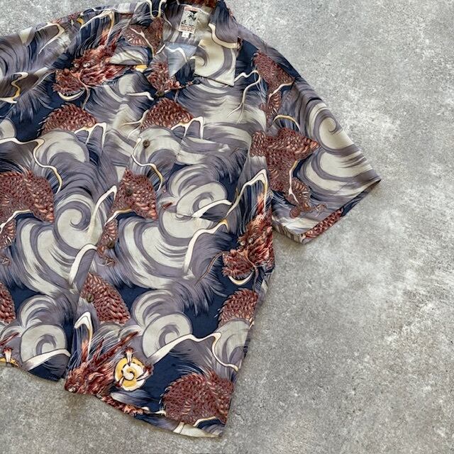 【JUNGLE STORM】ジャングルストーム 90s アロハシャツ オープンカラーシャツ ハワイアン ループカラー レーヨン ヴィンテージ 龍 Lサイズ