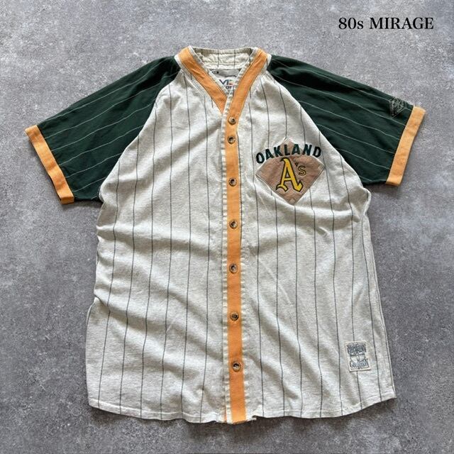 【MIRAGE】GOOPERSTOWN COLLECTION ミラージュ グーパーズタウン 80s ベースボールシャツ 半袖シャツ 刺繍ロゴ オークランドアスレチックス