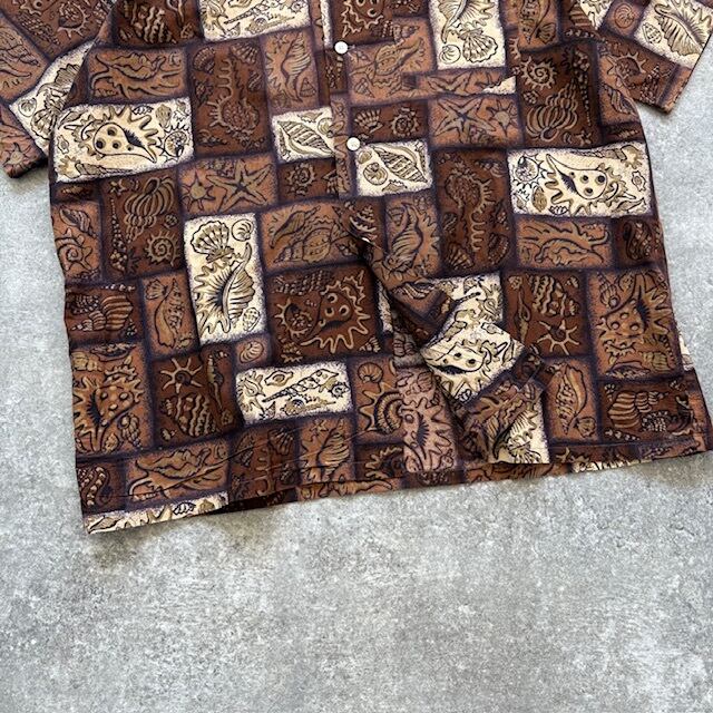 【B.V.D.】ビーブイディー ヴィンテージ アロハシャツ オープンカラーシャツ ハワイアンシャツ 半袖 50s ビンテージ 貝殻 総柄 50年代 (L)
