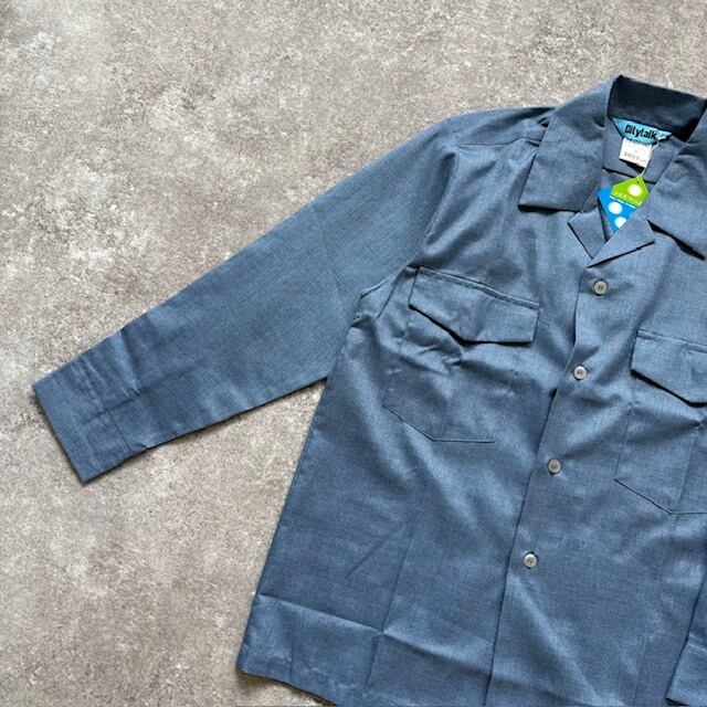 【City talk】Chambray WorkShirt 90s オープンカラー シャンブレーシャツ 長袖シャツ ポリコットン フラップポケット 日本製 ヴィンテージ