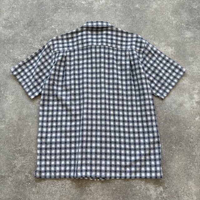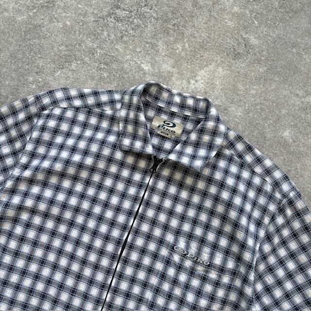 【PIKO】ピコ 90s シアサッカー 半袖シャツ ジップアップ チェック 刺繍ロゴ 90年代 Y2K オールドサーフ ジップシャツ コットン (M)