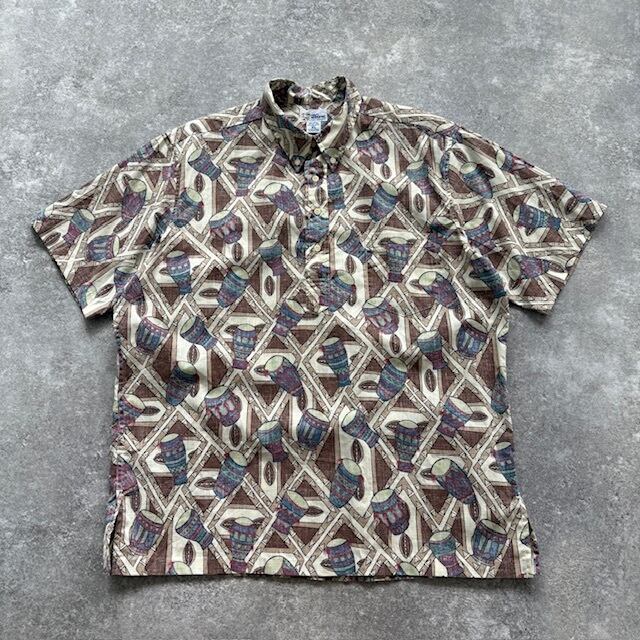 【REYN SPOONER】レインスプーナー アロハシャツ 90s ビンテージ ハワイアンシャツ USA製 プルオーバー パーカッション柄 レアデザイン XL