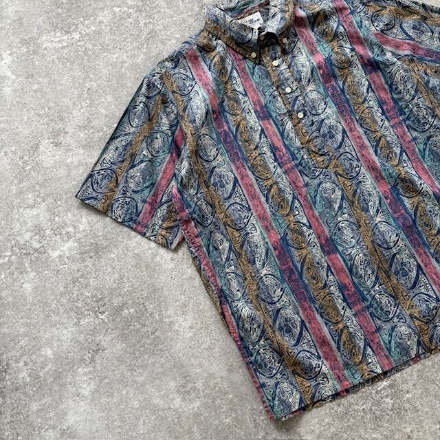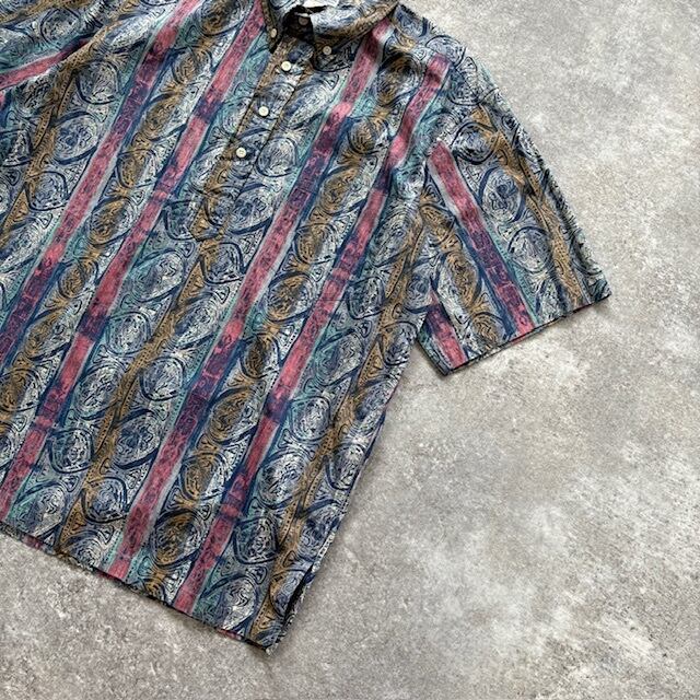【reyn spooner】90s レインスプーナー ボーダー柄 アロハシャツ プルオーバー 半袖シャツ ハワイアンシャツ ヴィンテージ 希少デザイン