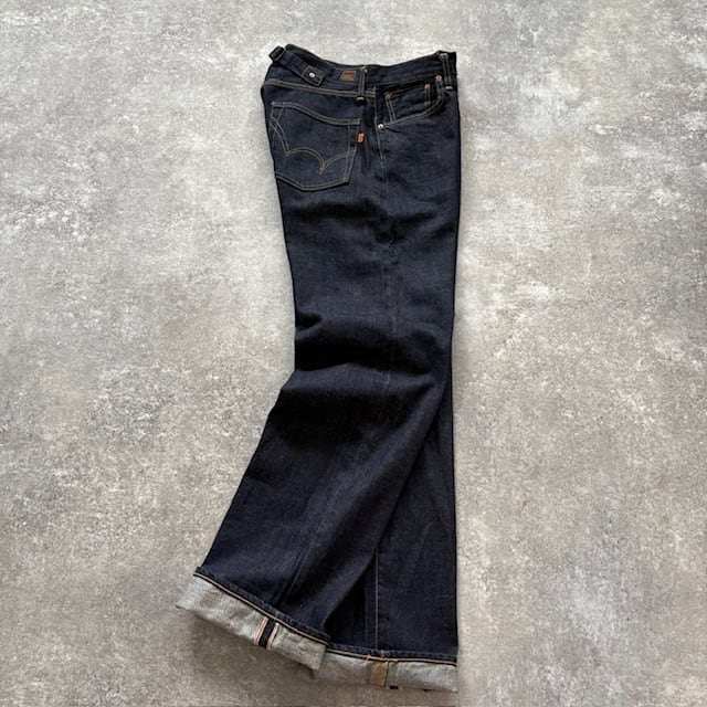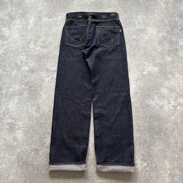 【EDWIN】90s エドウィン 大戦モデル 赤耳セルビッチ デニムパンツ ジーンズ 針刺しシンチバック Vステッチ ドーナツボタン 濃紺極太 (31)