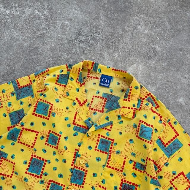 【Ocean pacific】OP オーシャンパシフィック アロハシャツ 80s 半袖シャツ オープンカラーシャツ ハワイアンシャツ ヴィンテージ 刺繍ロゴ