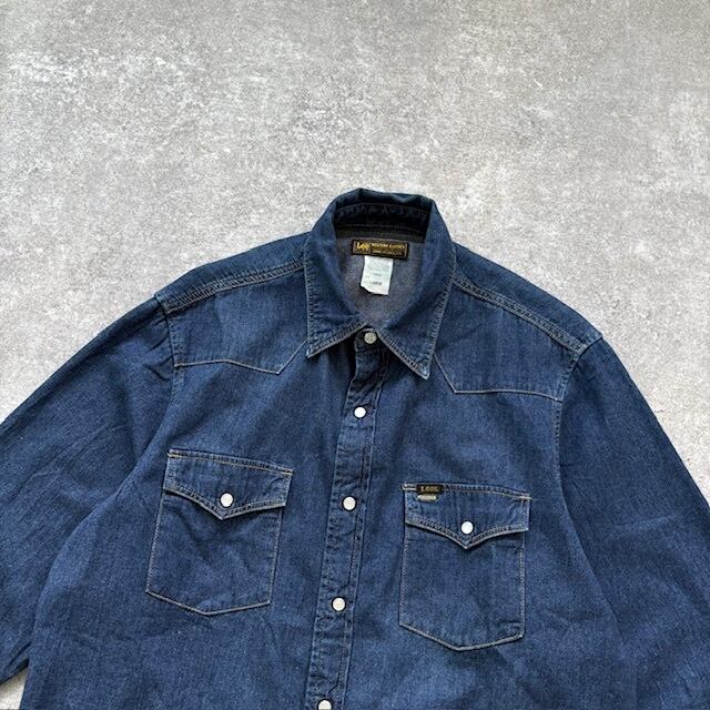 【Lee】90s リー デニムウエスタンシャツ 長袖シャツ ヴィンテージ ボタンダウンシャツ 濃紺 パールスナップ アメカジ LEE インディゴ (L)