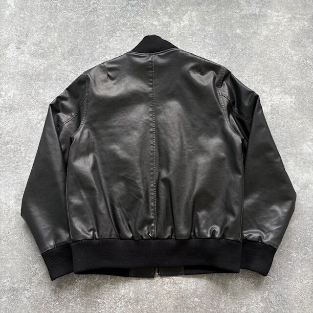 【GUESS】ゲス フェイクレザージャケット 革ジャン ブラック 黒 ライダース ブルゾン キルティング ロック ロゴプリント 肉厚 (M)