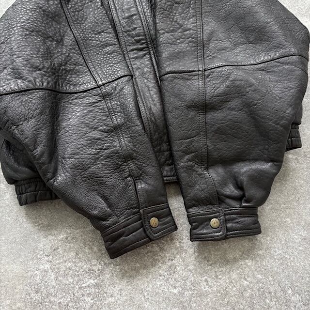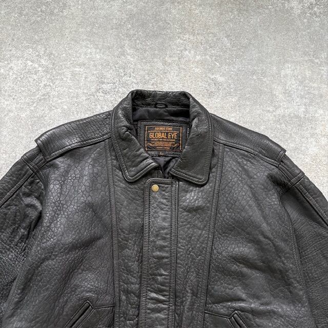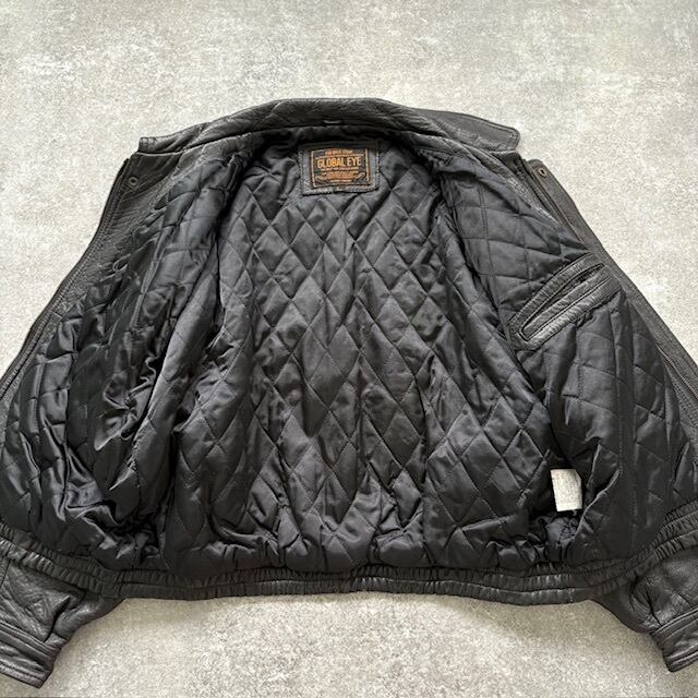【GLOBAL EYE】90s ヴィンテージ レザージャケット 羊革 ブラック シープスキン 太アームホール 短丈 ブラック キルティング ヴィンテージ