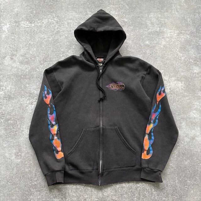 【HARLEY-DAVIDSON】PATRIOT 正規ディーラー限定 ハーレーダビットソン スウェットパーカー ジップパーカー ファイヤー フレイム ブラック