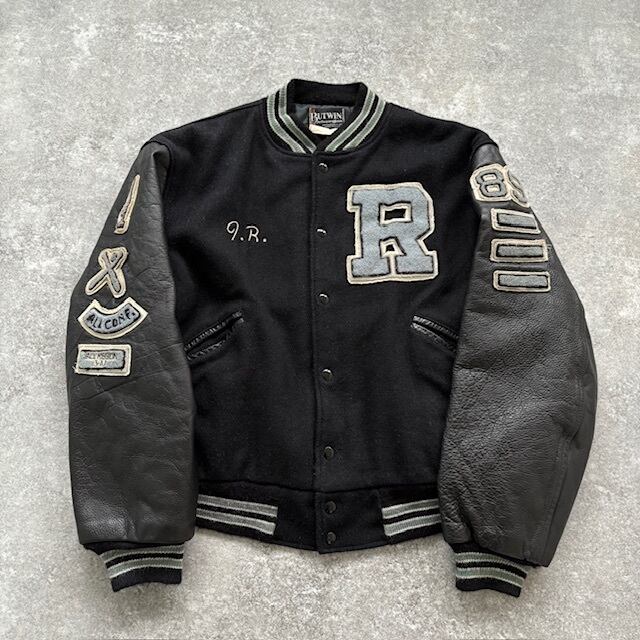 【BUTWIN】バトウィン 80s USA製 スタジャン バーシティジャケット スタジアムジャンパー ヴィンテージ 袖革 黒 ブラック 80年代 ワッペン