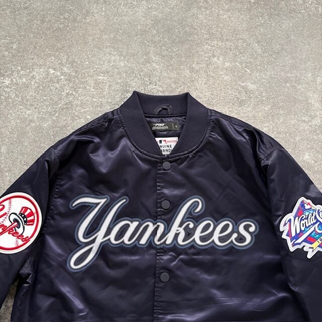 【GENUINE MERCHANDISE】New York Yankees ゲン ニューヨークヤンキース ナイロンスタジャン スタジアムジャンパー デカロゴ ワッペン (L)