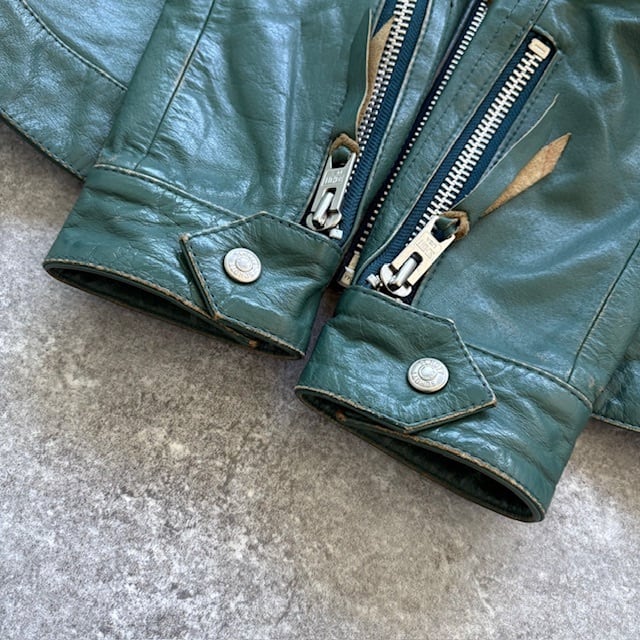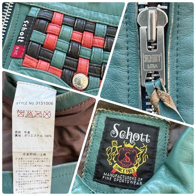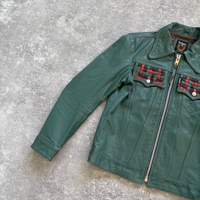 【schott】SCHOTT ショット ヒッピージャケット レザージャケット シングルライダースジャケット 革ジャン チェックパネル グリーンレザー