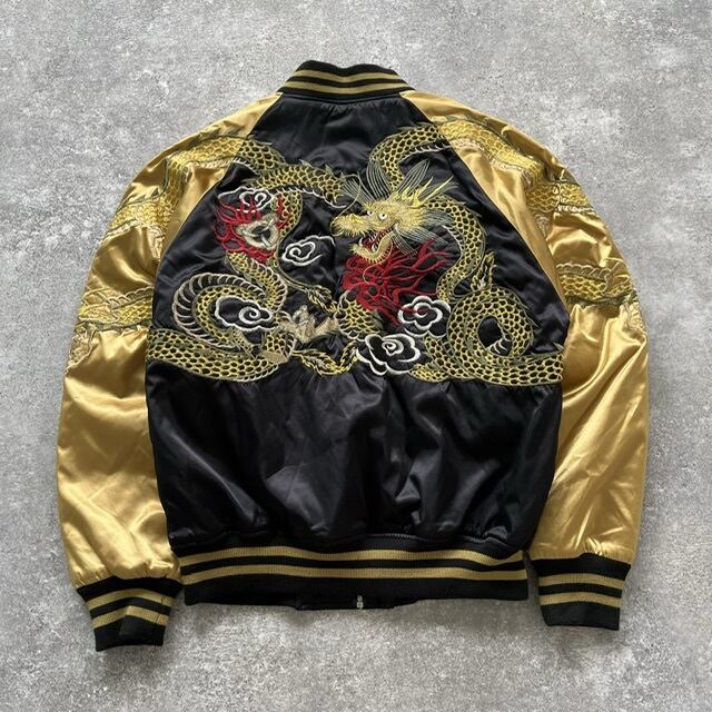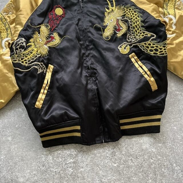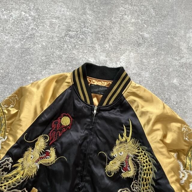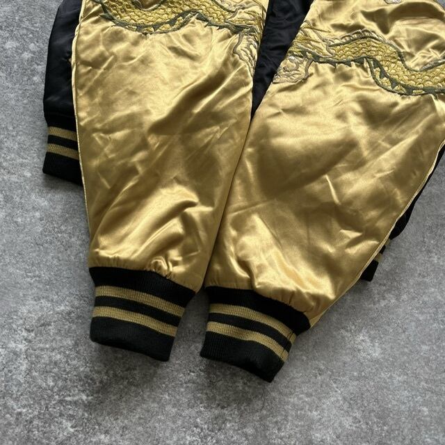 【Hoshihime】ホシヒメ 星姫 サテンスカジャン スーベニアジャケット ブラックゴールド 龍 ドラゴン刺繍 キルティング レアカラー 日本製 F