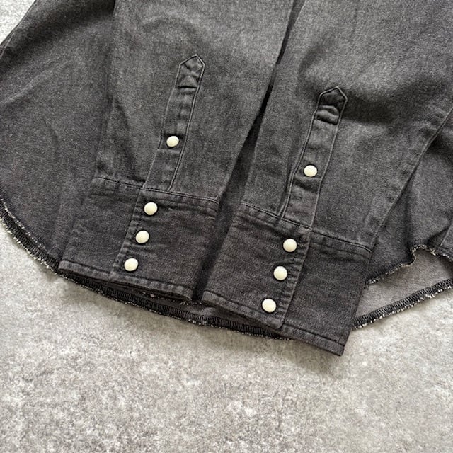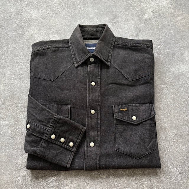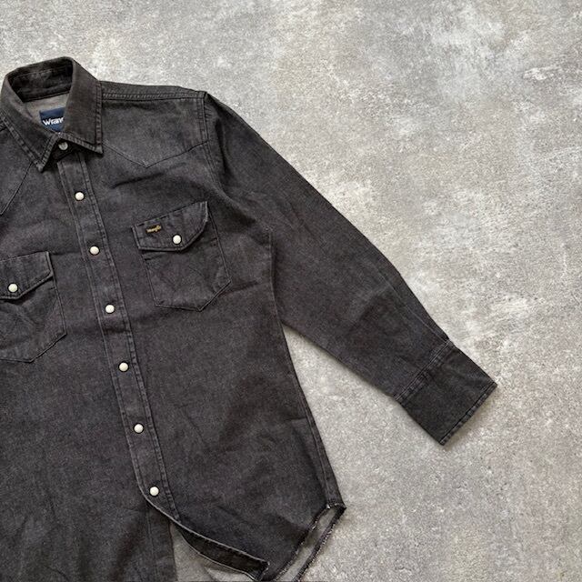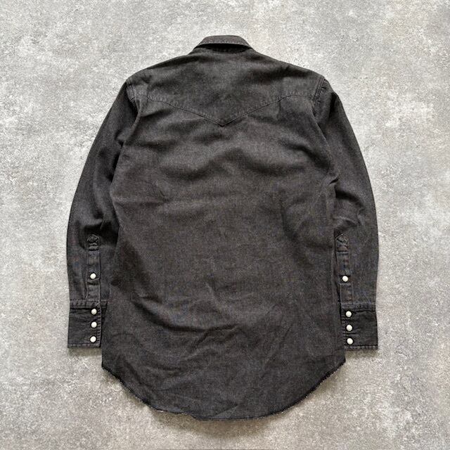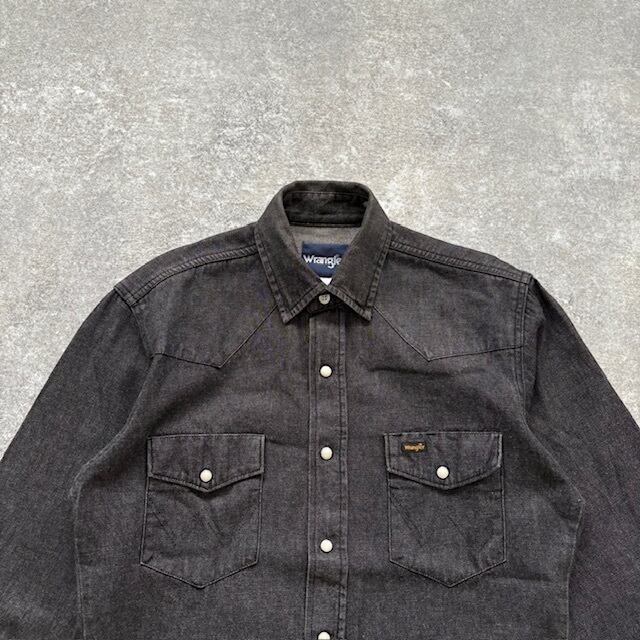 【Wrangler】ラングラー ブラック デニムウエスタンシャツ 長袖シャツ 先染めブラック 黒シャツ アメカジ スナップボタン 濃黒 (M相当)