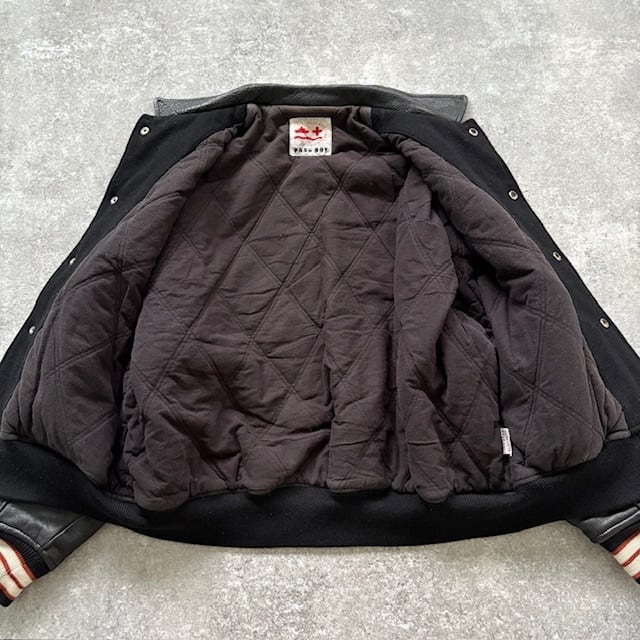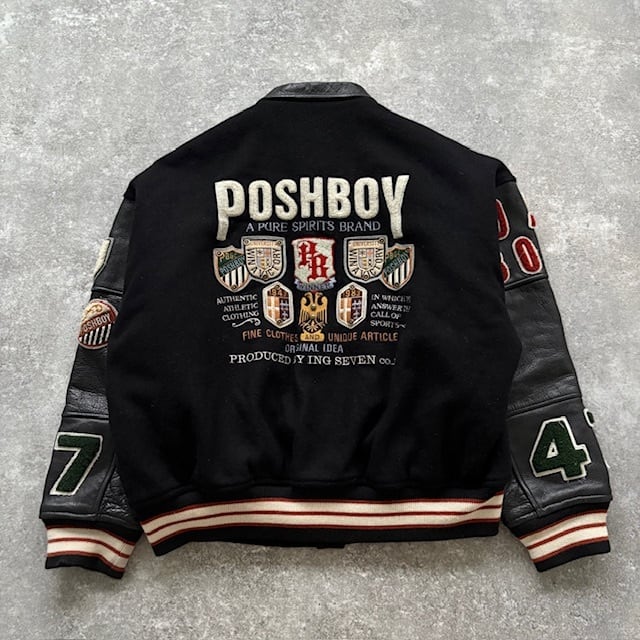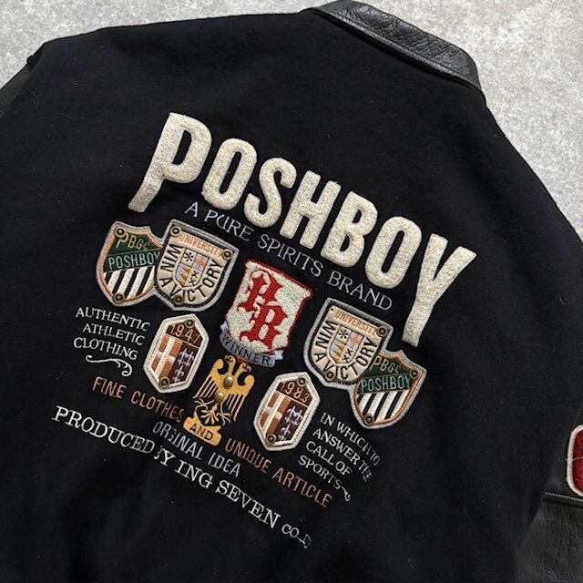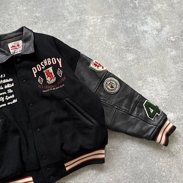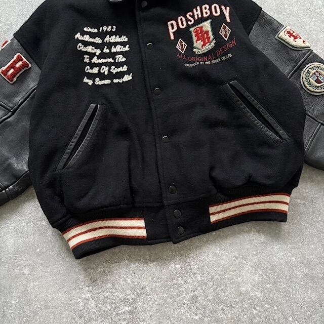 【POSHBOY】ポッシュボーイ フルデコスタジャン スタジアムジャンパーヴィンテージ 80s 黒 ブラック バーシティジャケット 袖革 80年代 (F)