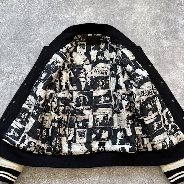 脱いだ瞬間からメンバー写真を総柄プリントしたキルティング仕様は、まさに“着るロックアート”。