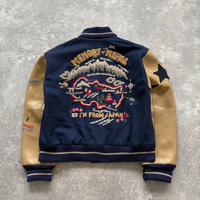 背中に大胆に刺繍された「MEMORY OF NEPAL」は、旅先の空気や人の温度まで感じるような“記憶の地図”。