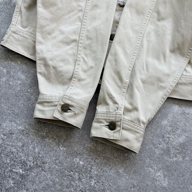 白は下手をすると、胡散臭く見えがちなカラーですが、こちらはわずかにくすみを帯びたオフホワイト。ヴィンテージ特有の味わいが絶妙で、爽やかすぎない落ち着きがあります。