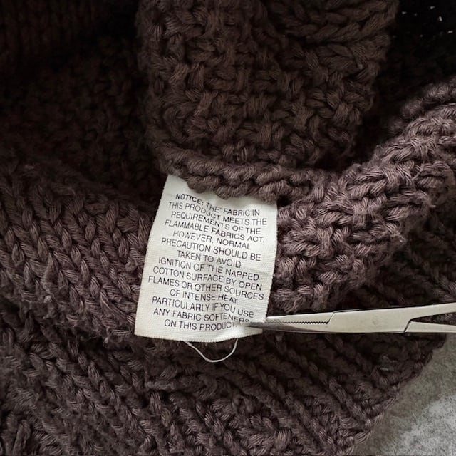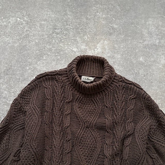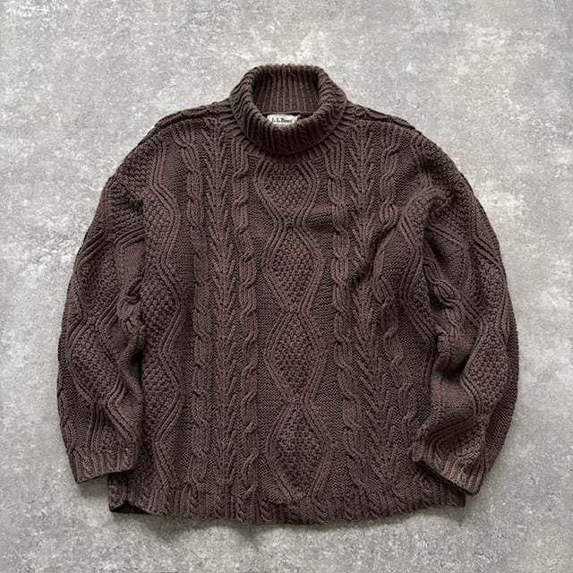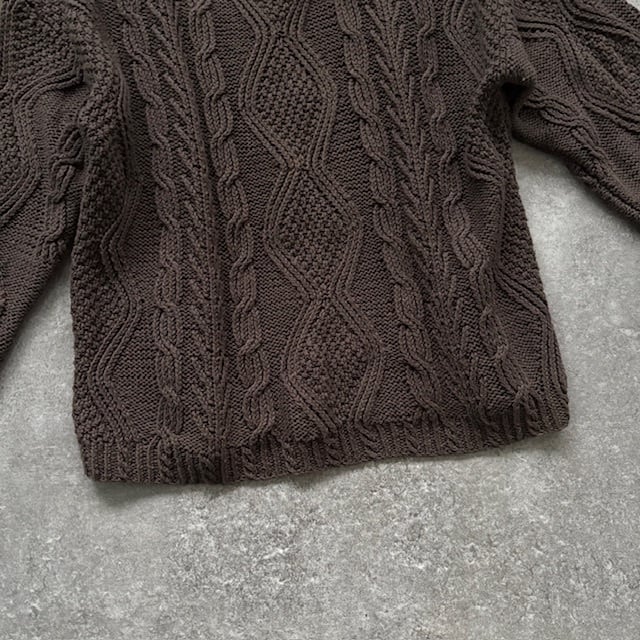 肉厚なケーブル編みと深みのあるチョコレートブラウンが、当時の空気をそのまま閉じ込めています。