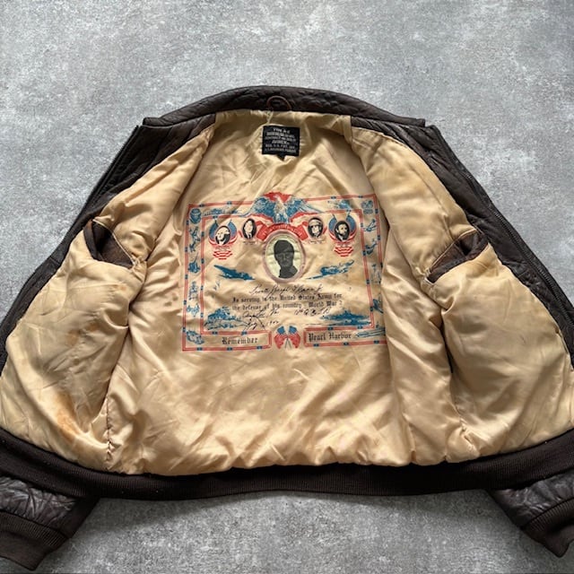 ライニングには「Remember Pearl Harbor」の戦時グラフィック、A-2 TYPE表記のオフィシャルタグ。AVIREXが“本気でミリタリーを再現していた”時代のプロダクトです。