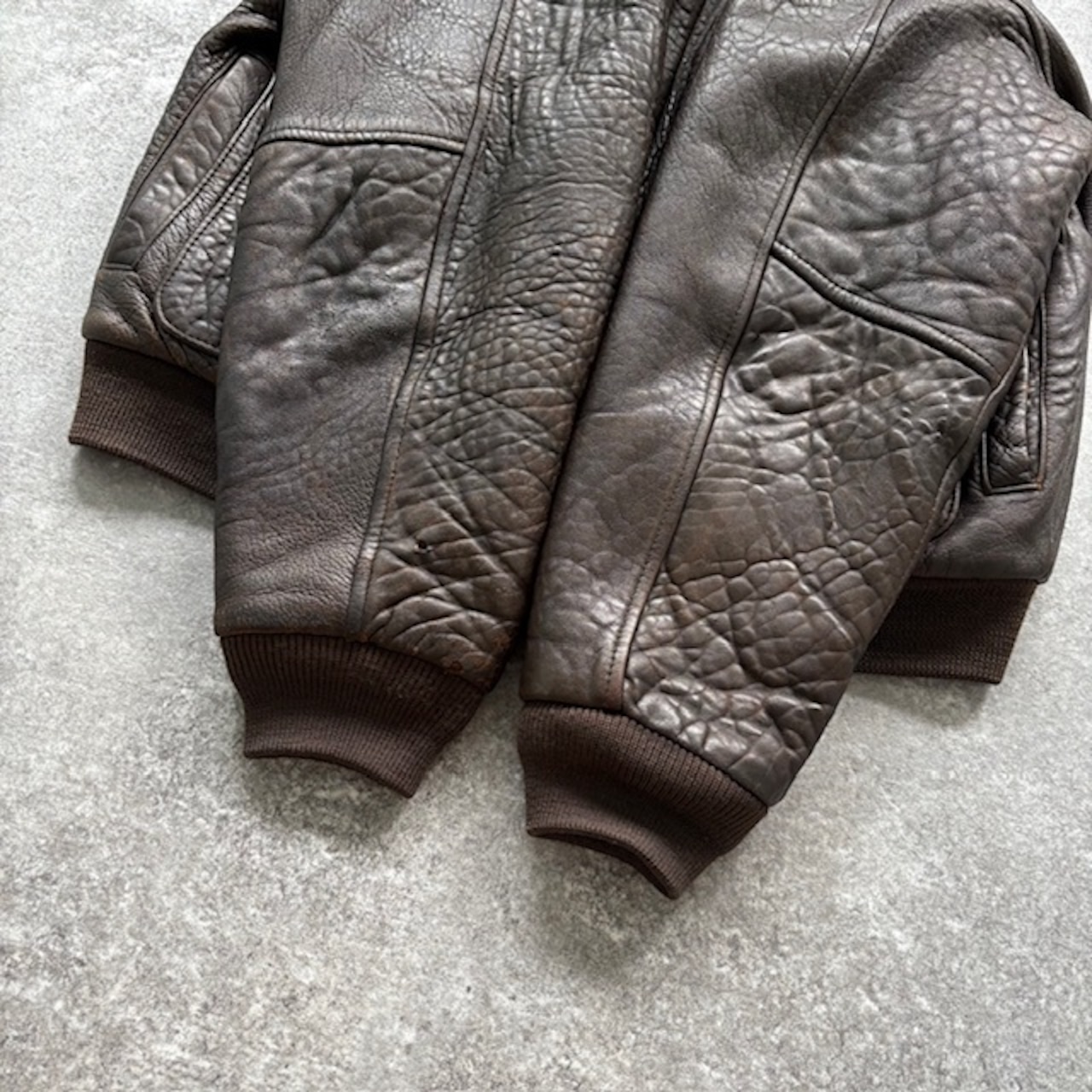 内側に若干の破れ、レザーに経年変化のダメージなどありますが、ヴィンテージのアジとしてまだまだ着用いただけます。