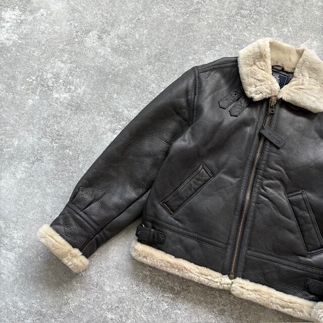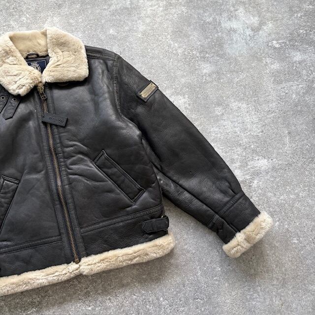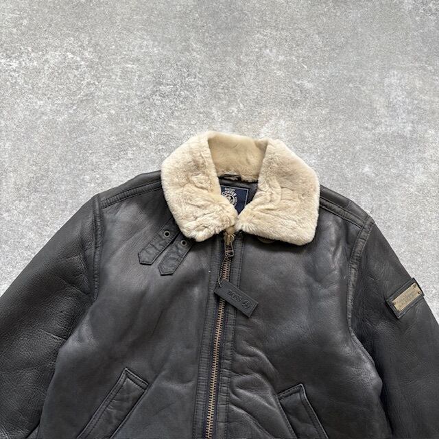 【BOSS】SUNTORY サントリーボス B-3 フライトジャケット ボスジャン レザージャケット ムートン エンボスロゴ 2000年限定 非売品 黒 牛革