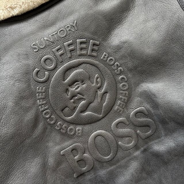 当時の「ボスジャン」シリーズの中でも、異彩を放つ存在。重厚なムートンレザーに刻まれた“SUNTORY BOSS COFFEE”のエンボスロゴ。