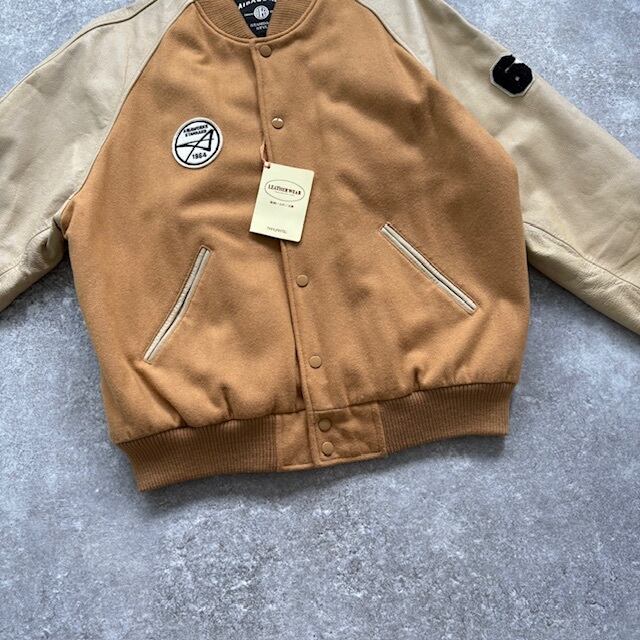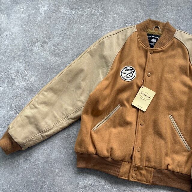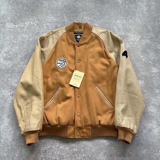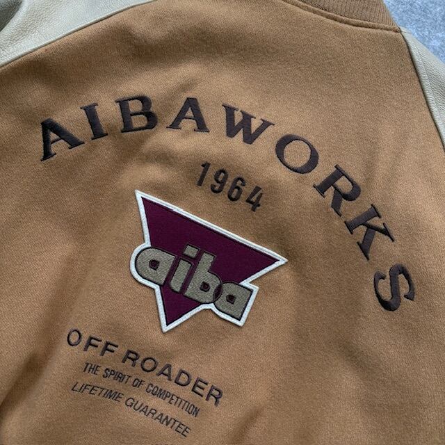 【AIBA WORKS】アイバワークス スタジャン スタジアムジャンパー バーシティジャケット 袖レザー ワッペン 刺繍 非売品 袖革 牛革 企業系 L