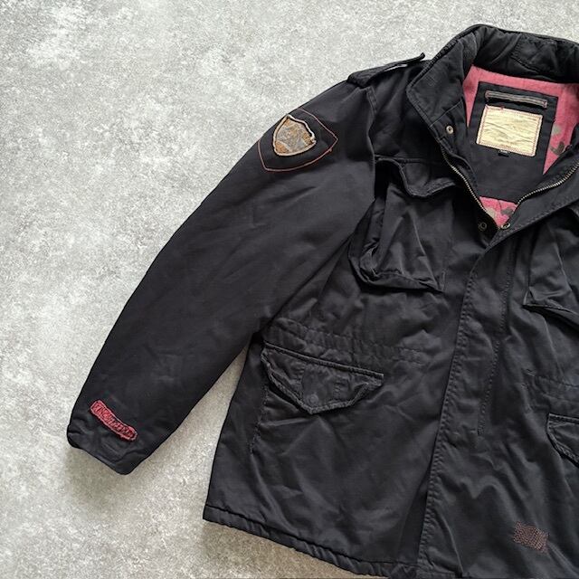 【ALPHA INDUSTRIES】アルファインダストリーズ 海外企画 M-65 ミリタリージャケット フィールドジャケット スカル刺繍 ダメージリペア加工